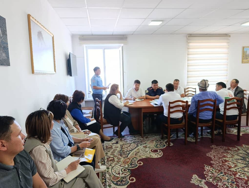 Отурумда райондогу кылмыштуулуктун абалы, малдын катышуусу менен болгон жол кырсыктарын алдын алуу маселелери каралды. Жыйындын отурумунун чечими менен айыл өкмөт башчыларына жана тиешелүү кызмат адамдарына тапшырмалар коюлду.