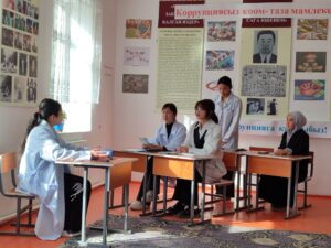 2026-жылдын 18-мартында Кыргыз Республикасынын Министрлер кабинетин 27.01.2026-жыл №29 “2026-2027-жылдарга Кыргыз Республикасынын коррупцияга каршы маалыматтык саясатынын мамлекеттик программасын ишке ашыруу максатында, Жети-Өгүз райондук мамлекеттик администрациясы жана райондук билим берүү бөлүмүнүн демилгеси астында, Саруу айылынын “Ж.Чабалдаев” атындагы орто мектебинин мугалимдер жамааты жана 9-11-классынын окуучулары тарабынан “Коррупциясыз коом-таза мамлекет” аттуу сценалаштырылган иш чарасы болуп өттү.
