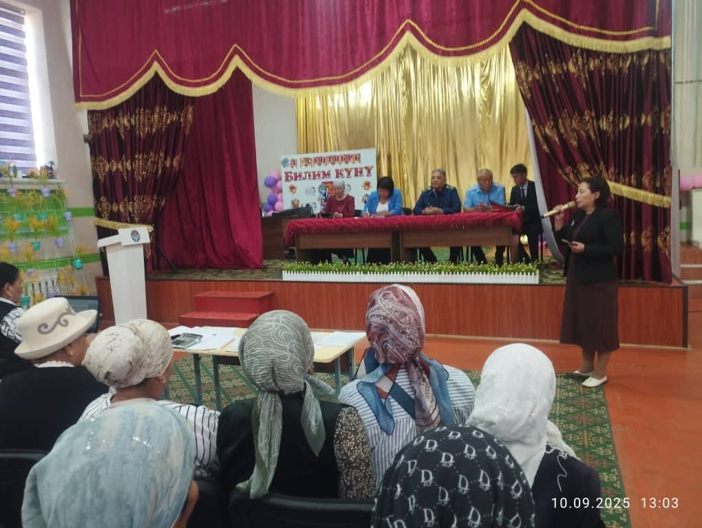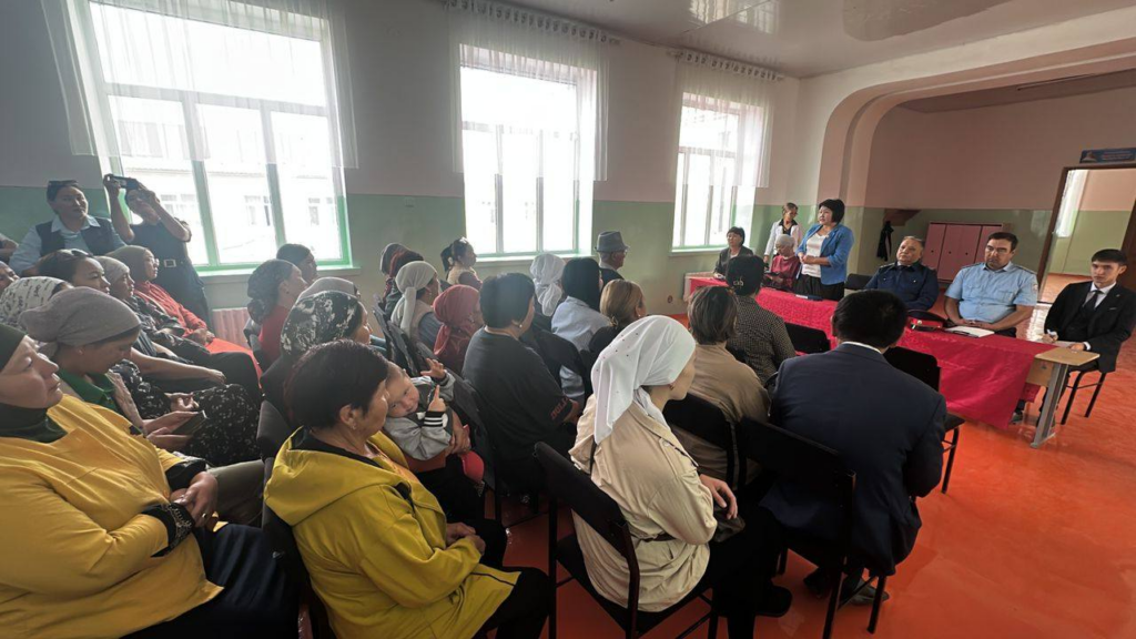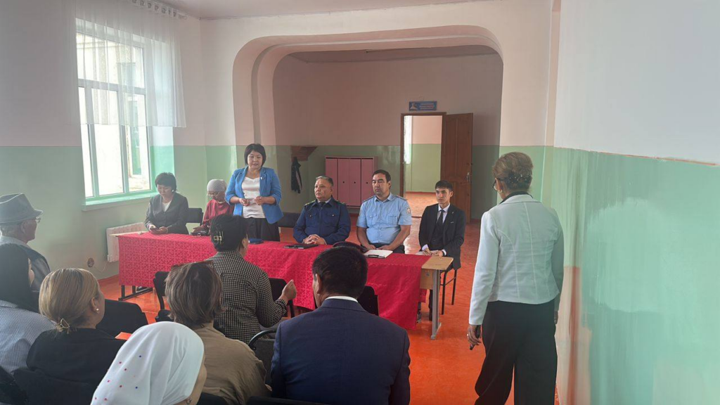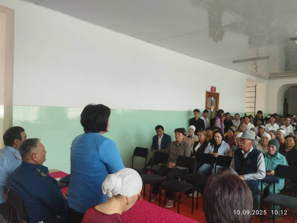 Ж.К.Бектемирова, район прокурору А.К.Исманов, райондук ички иштер бөлбүмүнүн, райондук билим берүү жана райондук эмгек, социалдык камсыздоо жана миграция башкармалыгынын тиешелүү кызмат адамдары мектеп жамааты жана окуучулары менен жолугушууларды уюштурулуп өткөрүшүүдө.